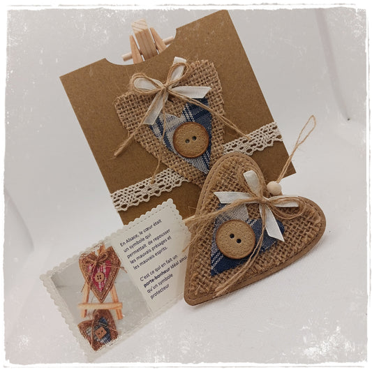 Amulette coeur + pochette assortie - "Porte-bonheur"