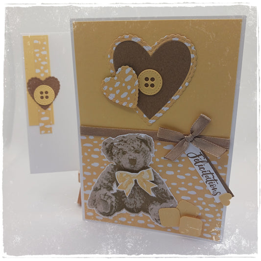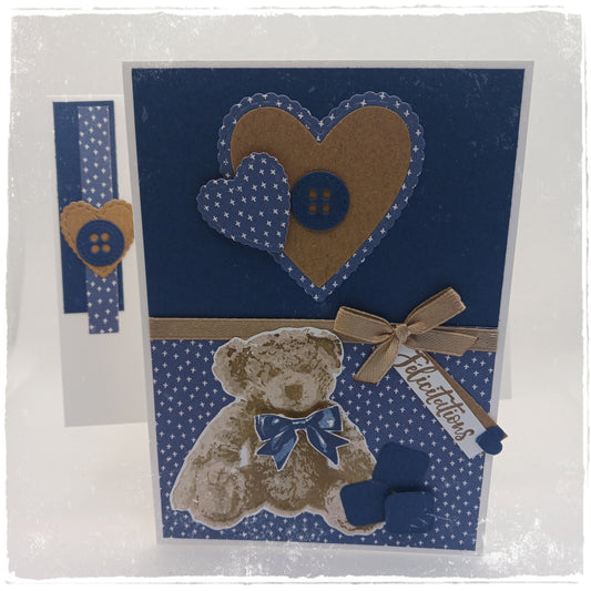 Carte naissance - Petit ours brun - " Félicitations " / Pastel